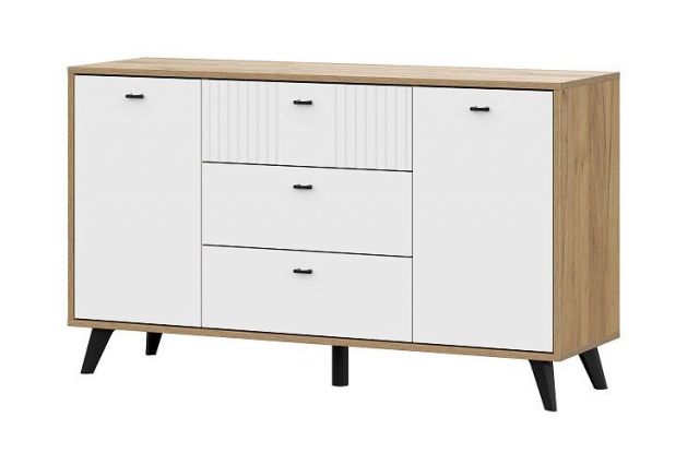 Модульная гостиная «Милан» Белая — это невероятное сочетание ЛДСП в цвете Дуб Золотой и Белого матового МДФ. Безупречная фрезеровка фасадов подчёркивает мягкую матовую текстуру, а сама гостиная выглядит ярко и контрастно. Всё это позволяет сделать дизайн гостиной уникальным и запоминающимся.
