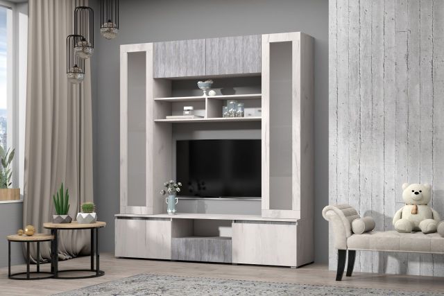 Образованная ими ниша под ТВ позволяет разместить телевизор широкого размерного ряда, который можно разместить как на стене, так и на тумбе.