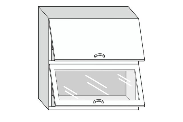 19.80.8 Грейс Шкаф настенный с двумя гориз. дверцами, одной стекл. дверцей h 913