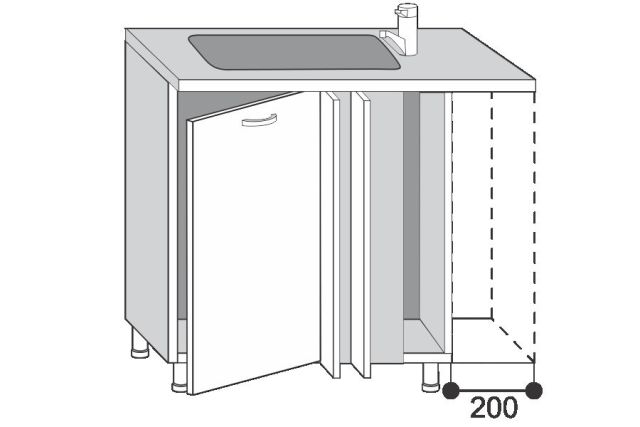 • Высота верхних шкафов: 913 мм