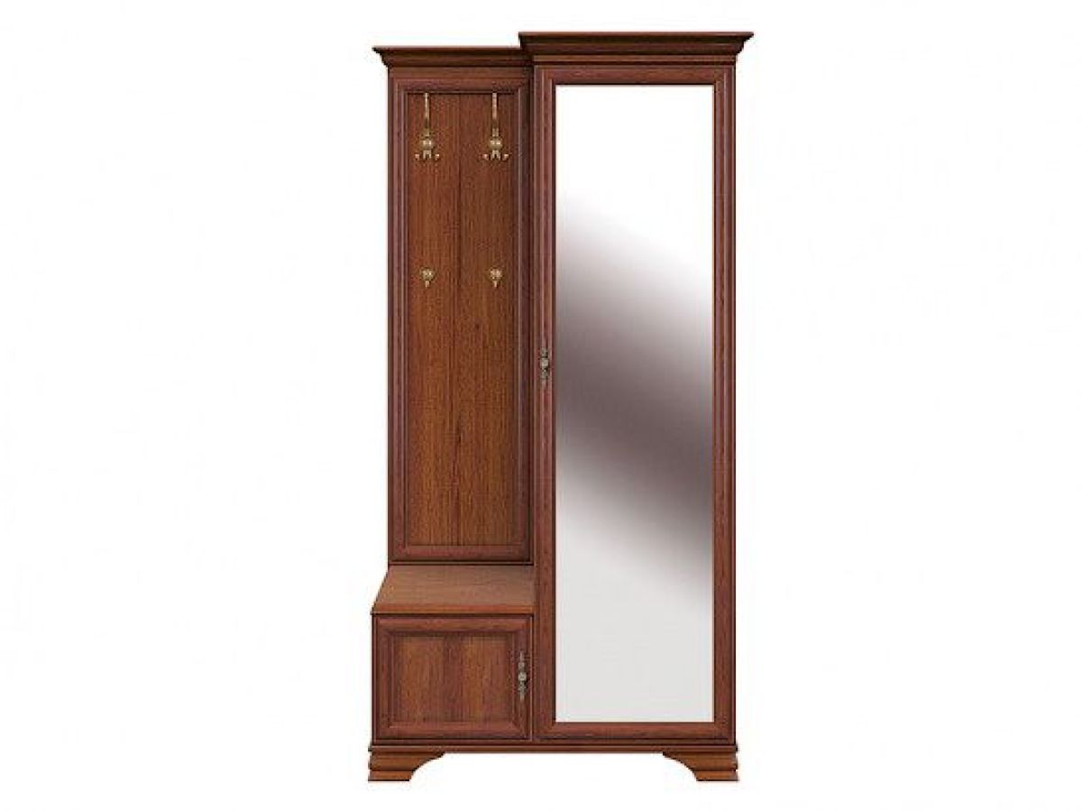 Кентаки - мебель классического стиля, отличающаяся природными цветами, отделкой фактурой, всегда актуально и востребована, она настолько универсальна, что без проблем впишется в любой современный дизайн. Стиль набора модульной мебели подчеркивается лакированной патинированной планкой в фасадах, карнизами - завершающим акцентом в зеркалах и высоких элементах набора, витиеватыми ручками.