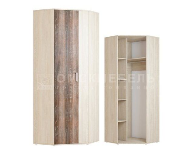 Модульная прихожая "Порту" состоит из: - прихожей; - стеллажа; - тумбы для обуви; - шкафа-пенала; - шкафа 2-х дверного; - шкафа углового. Выполнена из ЛДСП в цвете: корпус - дуб сонома, фасад -дуб сакраменто темный.