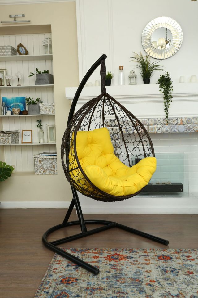 Стойка - стальная диаметр 51 мм, толщина 3 мм. Покрытие порошковой краской. Кокон - стальной каркас с оплетенным экоротангом. Подушка из Габардиновой ткани.